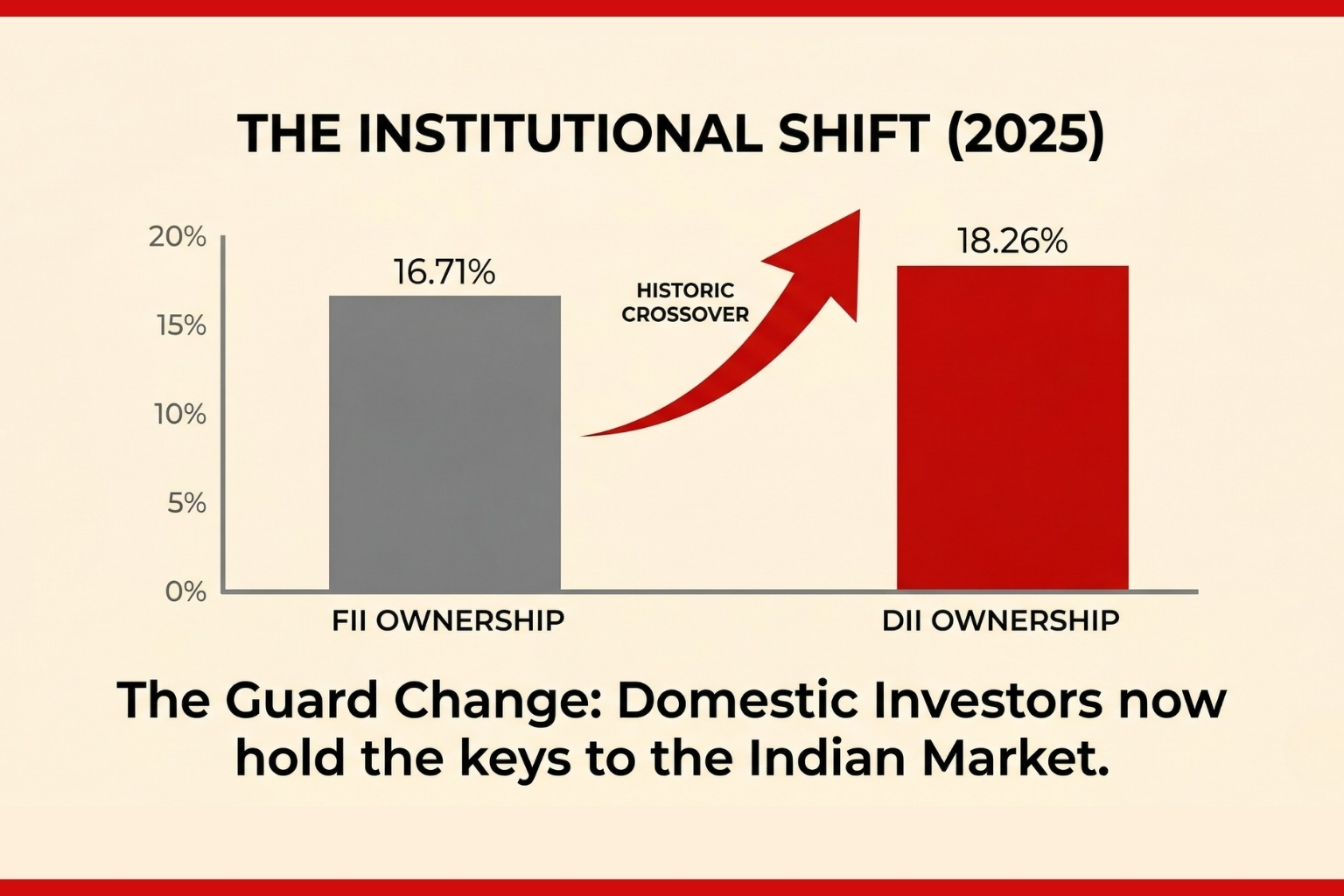 For the first time in history, DII ownership of NSE-listed companies (18.26%) has surpassed FII ownership (16.71%).