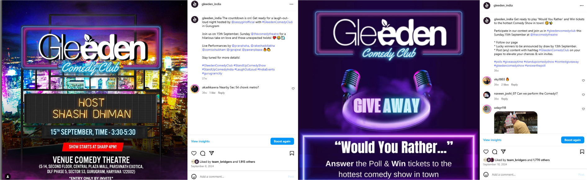 We released engaging video highlights and photo galleries on all social media channels, including short, dynamic Reels. Detailed blog posts summarized the event’s success. We encouraged attendees to share their experiences using a unique hashtag. Critically, we leveraged YouTube Marketing by uploading the full show recordings, alongside short, punchy clips and comedic highlights as YouTube Shorts, expanding our reach and driving sustained engagement. We also executed a few strategic collaborations with content creators to extend the event's digital footprint.